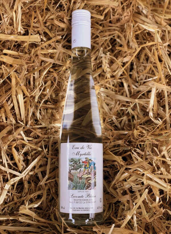 Lecomte Blaise - Depuis 1820 L'eau de vie de myrtille est un produit rare et unique. Obtenue par la distillation de mirtylles préalablement nacérées à l'alcool, cette eau de vie développe un bouquet délicat et fin. Eau de Vie Myrtille obtenue par macération et distillation. L'eau de vie de myrtille se déguste bien fraîche en digestif ou pour arroser un sorbet. Alc. 43 % vol. Contenance : 50 cl Déconseillé chez la femme enceinte.