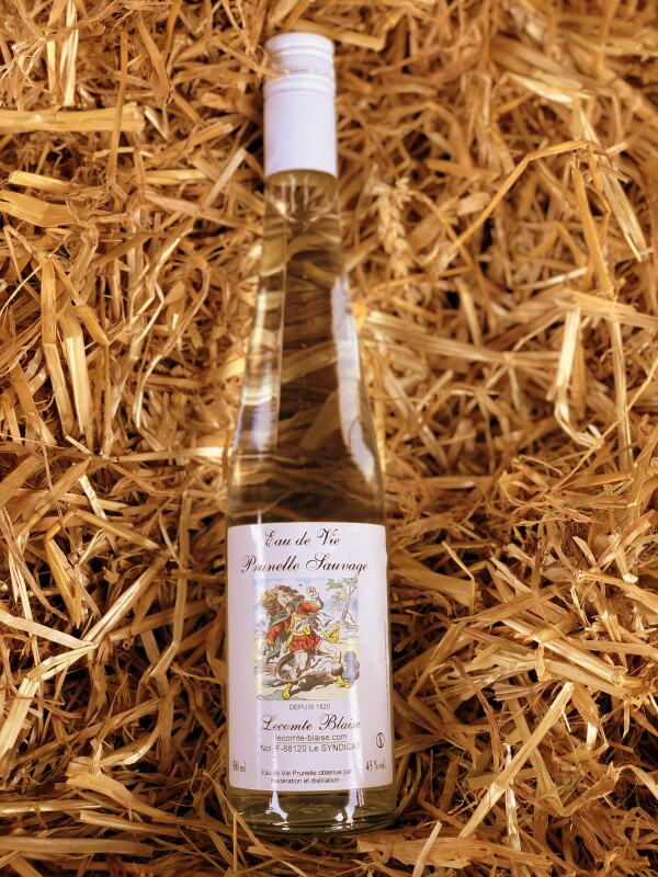 Lecomte Blaise - Depuis 1820 La prunelle est un fruit rond de couleur bleu très sombre, à noyau, qui est récolté après les premières gelées. Son goût est acide, voire astrigent. Macérées puis distillées, l'eau de vie est très agréable. Fruitée, elle est légèrement acidulée. Eau de Vie Prunelle obtenue par macération et distillation. L'eau de vie se déguste bien fraîche en digestif. Alc. 43 % vol. Contenance : 50 cl Déconseillé chez la femme enceinte.