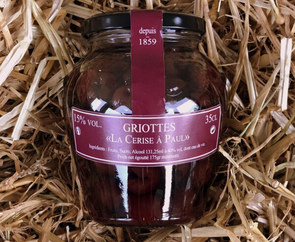 Griottes dénoyautées à la liqueur et au kirsch Depuis 1859 Alc. 15 % vol. Contenance : 35 cl Poids net égoutté : 175 gr minimum Déconseillé aux femmes enceintes.