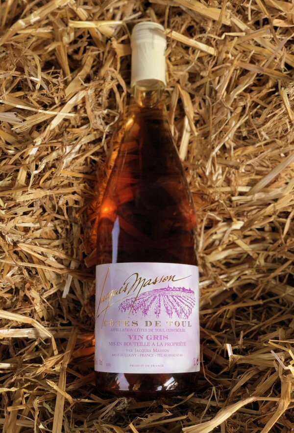 Vin gris Appellation Côtes de Toul Controlée Produit de France Mis en bouteille à la propriété par Jacques Masson. Alc. 12 % vol. Contenance : 75 cl Déconseillé chez la femme enceinte.