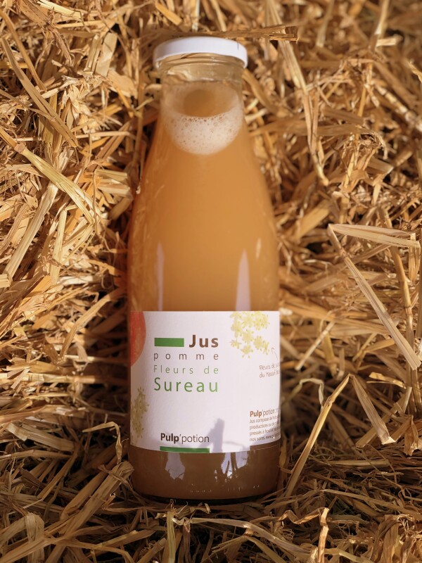 Fleurs de sureau du Massif des Vosges Jus composé de fruits et légumes de nos productions ou de productions locales, pressés à froid et mis en bouteille par nos soins. Contenance : 75 cl