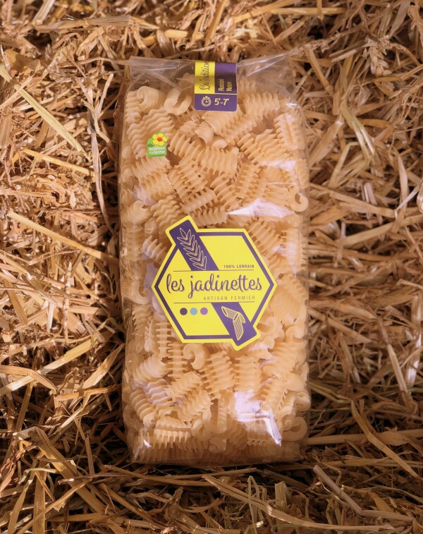 Les Traditionnelles- Radiatori Nature 100 % Lorrain Poids net : 450 gr Temps de cuisson : Cinq à sept minutes Produits à la ferme à partir de nos céréales