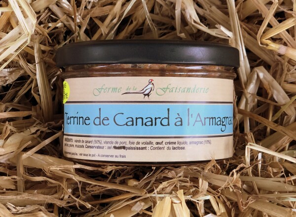 Viande de canard (50 %), viande de porc, foie de volaille, oeuf, crème liquide, armagnac (10 %), persil sec, sel, poivre, muscade. Conservateur : Sel. Epaississant : Contient du lactose.