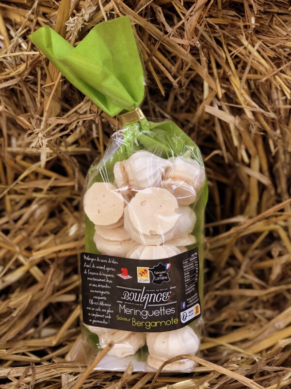 Sucre (U.E. et non U.E.), blanc d'œuf pasteurisé, caramel (eau, sucre), huile essentielle bergamote 0,05%. Allergène : œuf. Peut contenir des traces de fruits à coques, soja, blé, lait, sulfites. Pourcentages exprimés sur le produit fini.
