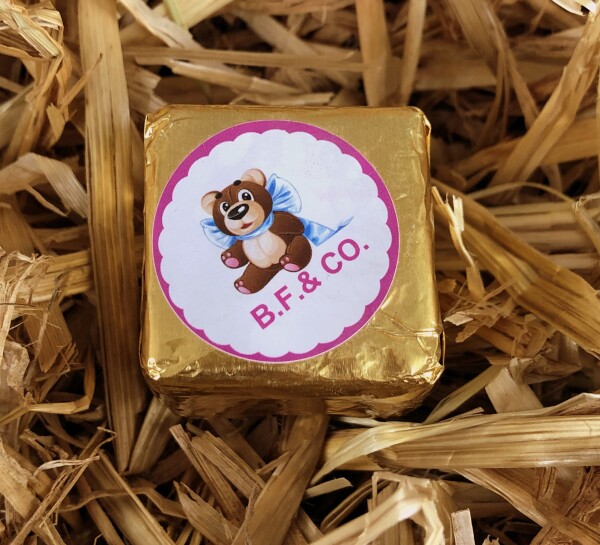 amandes, noisettes, sucre, beurre de cacao, pâte de cacao, lait en poudre, arôme naturel de vanille, emulsifiant E322, lécitjine de soja. Peut contenir des traces d'arachides, de gluten, de soja et de fruits à coque.