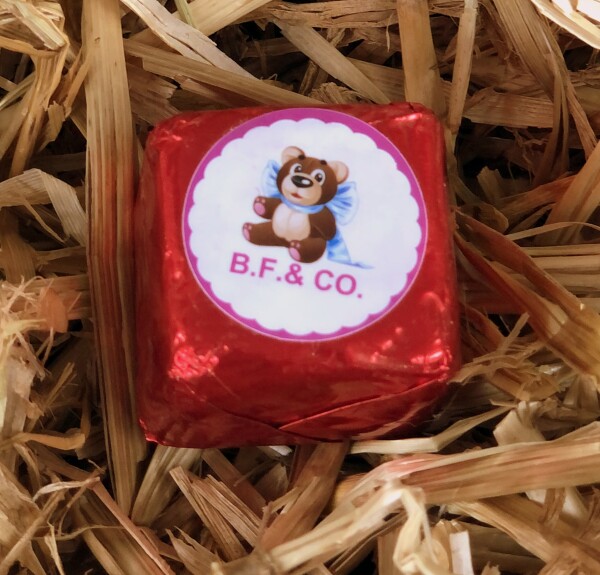 amandes, noisettes, sucre, beurre de cacao, pâte de cacao, lait en poudre, arôme naturel de vanille, emulsifiant E322, lécitjine de soja. Peut contenir des traces d'arachides, de gluten, de soja et de fruits à coque.