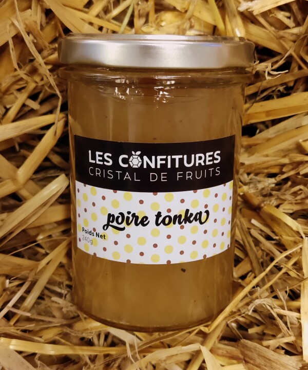 poires, sucre, jus de citron, pectine de fruits, fève tonka.